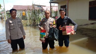 Kapolres Langkat AKBP Danu Pamungkas Totok, S.H, S.I.K, bersama Komunitas Cinta Charity, menyerahkan bantuan Sembako ke masyarakat Desa Pekubuan yang terdampak banjir. (Reza-BeritaNasional.ID) Cinta Charity bersama Polres Langkat Berikan 225 Paket Sembako Kemasyarakat yang Terdampak Banjir di Tanjung Pura