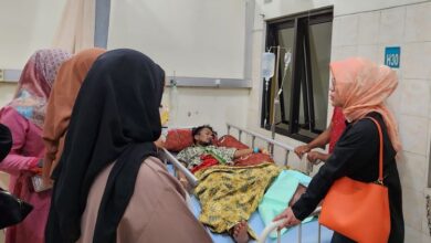 Mbak Una Baju hitam tas Orange saat kunjungi Nur Hidayat di ruang rawat Inap RSUD Abdoer Rahem Situbondo (Heru Hartanto/BeritaNasional.ID) Istri Bupati Situbondo Terpilih Kunjungi Penderita Tumor Kaki di RSUD Abdoer Rahem