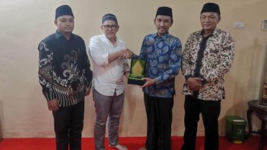 Rektor Universitas Ibrahimy Lora H. Ach. Fadhail ketika menerima cindramata dari Bayu Wibowo Kepala BPJS Ketenagakerjaan (Heru Hartanto/BeritaNasional.ID) Mahasiswa KKN Universitas Ibrahimy Sukorejo Situbondo Dilindungi Dengan Program BPJS Ketenagakerjaan