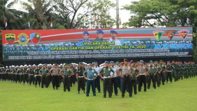 Danlanud Soewondo Mengikuti Upacara Gelar Operasi Gaktib dan Operasi Yustisi TA 2020 di Lapangan Makodam I/BB