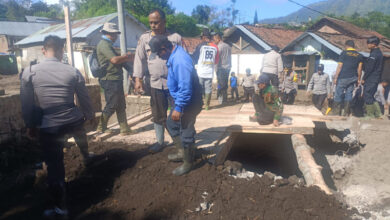 TNI/Polri bersih-bersih di lokasi banjir (Syamsul Arifin/BeritaNasional.ID) Pasca Banjir Bandang di Desa Wonoboyo, TNI/Polri Bersih-bersih