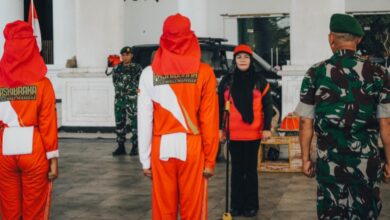 Dr. Hj. Agusnia Hasan Sulur saat resmi membuka kegiatan Pendidikan dan Pelatihan (Diklat) Pasukan Pengibar Bendera Pusaka (Paskibraka) Tahun 2025 Diklat Paskibraka 2025 Polman Resmi Dimulai , Agusnia HS: Bentuk Ketangguhan Mental Semangat Nasionalisme