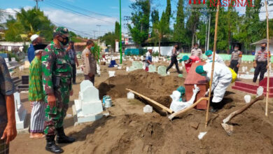 BeritaNasional.id,- SITUBONDO JAWA TIMUR, – Anggota Koramil 0823/02 Panji dan Anggota Polsek Panji melakukan pengamanan prosesi pemakaman jenasah suspect Covid-19…