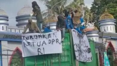 Aliansi Mahasiswa Makassar gelar demo tuntut penurunan Ketua DPR RI - foto:Budhy Aliansi Mahasiswa Makassar Gelar Unjuk Rasa Tuntut Penurunan Ketua DPR RI