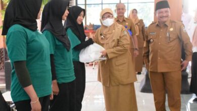 Wakil Bupati didampingi Bupati ketika menyerahkan bingkisan paket sembako kepada petugas kebersihan (As’ad Zuhaidi Anwar/BeritaNasional.id) Raih Piala Adipura, Bupati dan Wabup Situbondo Serahkan Sembako Serta Uang Tunai Kepada 524 Petugas Kebersihan