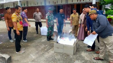 Proses pemusnahan surat suara rusak oleh KPU Bone Bolango. (Bernas Network) Sebanyak 174 Surat Suara Rusak Dimusnahkan KPU Bone Bolango
