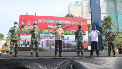 Danlanud Soewondo Bersama Forkopimda Sumut Ikuti Apel Penyemprotan Disenfektan Secara Masif di Kota Medan