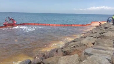 Kondisi air laut yang tercemar dikawasan pantai Ujong Blang, Lhokseumawe, Minggu 24 April 2022. (Foto: Ist) Kapal Di Pelabuhan Depot Pertamina Alami Kebocoran, Pantai Ujong Blang Tercemar