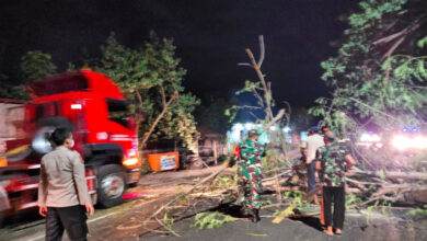 Anggota Polsek dan Koramil Banyuputih saat bantu evakuasi pohon tumbang (Heru/Berita nasional.ID) Anggota Koramil 0823/08 Banyuputih Bantu Evakuasi Pohon Tumbang