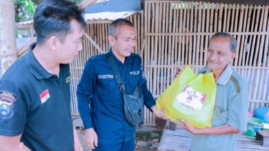 Kasi Humas Polres Situbondo bersama anggotanya saat menyalurkan paket sembako (Heru Hartanto/BeritaNasional.id) Humas Polres Situbondo Salurkan Paket Sembako