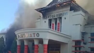 Kondisi Kantor Bupati Pohuwato saat dibakar massa Pasca Kantor Bupati Dibakar Massa, Pelayanan Publik Di Kabupaten Pohuwato Tetap Berjalan