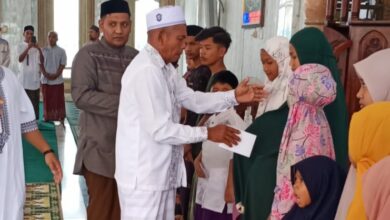 Penuda Alue Ie Mirah santuni anak yatim sekampung di Mesjid Baitul Hidayah Rayakan Idul Fitri, Pemuda Alue Ie Mirah Santuni Anak Yatim se Kampung
