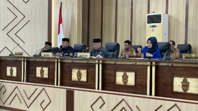 Ketua DPRD Wajo Firmansyah Perkesi didampingi Wakil Ketua Andi Merly Iswita memimpin Rapat Paripurna penyerahan dokumen Pokir kepada Bupati Wajo Andi Rosman sebagai bahan penyempurnaan Rancangan Awal RKPD. (Hms) DPRD Wajo Resmi Serahkan “Pokir” Aspirasi Rakyat ke Eksekutif