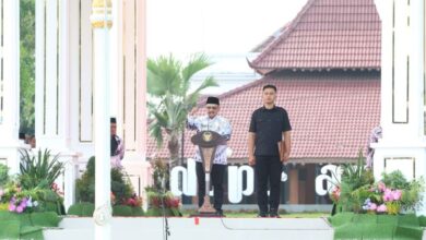 Bupati Situbondo di podium pada Apel Akbar Puncak Hari Ulang Tahun (HUT) PGRI ke 78 dan Hari Guru Nasional ke 30 di Alun-Alun Situbondo (Heru Hartanto/BeritaNasional.ID) Ini Pesan Bupati Situbondo Saat Apel Akbar Puncak HUT PGRI dan Guru