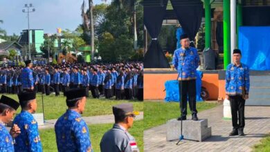 Bupati dan peserta apel ((Ghafur/Syamsul Arifin/BeritaNasional.ID)) Bupati KH. Abdul Hamid Wahid