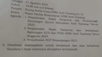 Srenshot undangan Rapat Panitia Musyawarah DPRK Aceh Tamiang dengan tiga agenda pembahasan, Selasa (22/8/2023). Ketua DPRK Aceh Tamiang Diboikot, Undangan Rapat Diabaikan Anggota Panitia