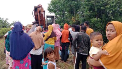 Warga Dusun II dan Dusun I Desa Kwala Serapuh, mempertahankan excavator, agar tidak ditangkap Polhut. (Reza-BeritaNasional.ID) Untuk Pelingkupan Pemukiman Masyarakat, Warga Minta Excavator Tidak Ditangkap Polhut