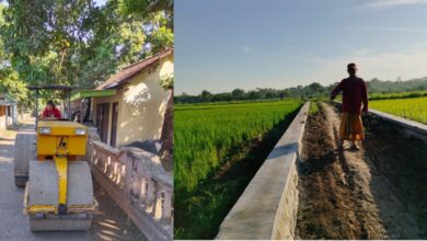 Kiri, pembangunan jalan Lapen tahun 2025, kanan, pembangunan TPT tahun 2024 (Syamsul Arifin/BeritaNasional.ID) Sejahterakan Warga, Pemdes Ramban Kulon Bangun Jalan Lapen dan TPT