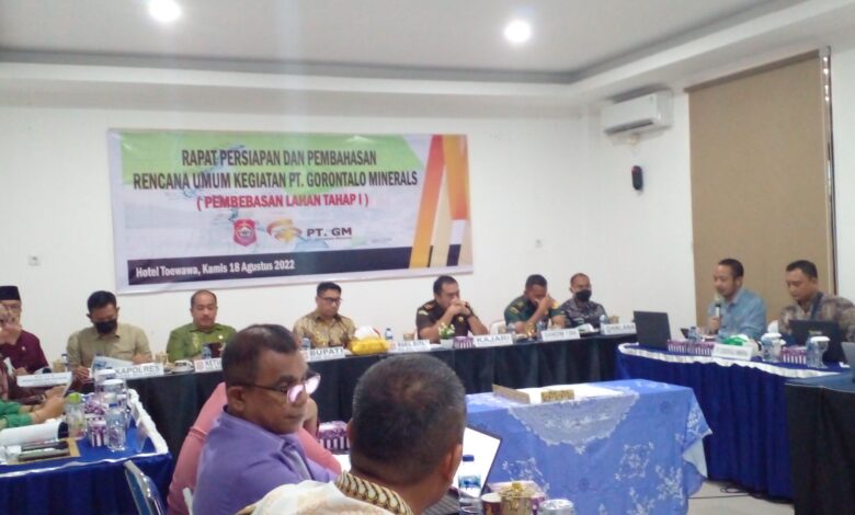 Hal ini diungkapkan Manajer Eksternal PT. Gorontalo Minerals Didik Budi Hatmoko kepada awak media usai Rapat Persiapan dan Pembahasan Rencana Umum PT. Gorontalo Mineral (Pembebasan Lahan Tahap I) yang berlangsung di Hotel Toewawa, Kamis (18/8/2022).
