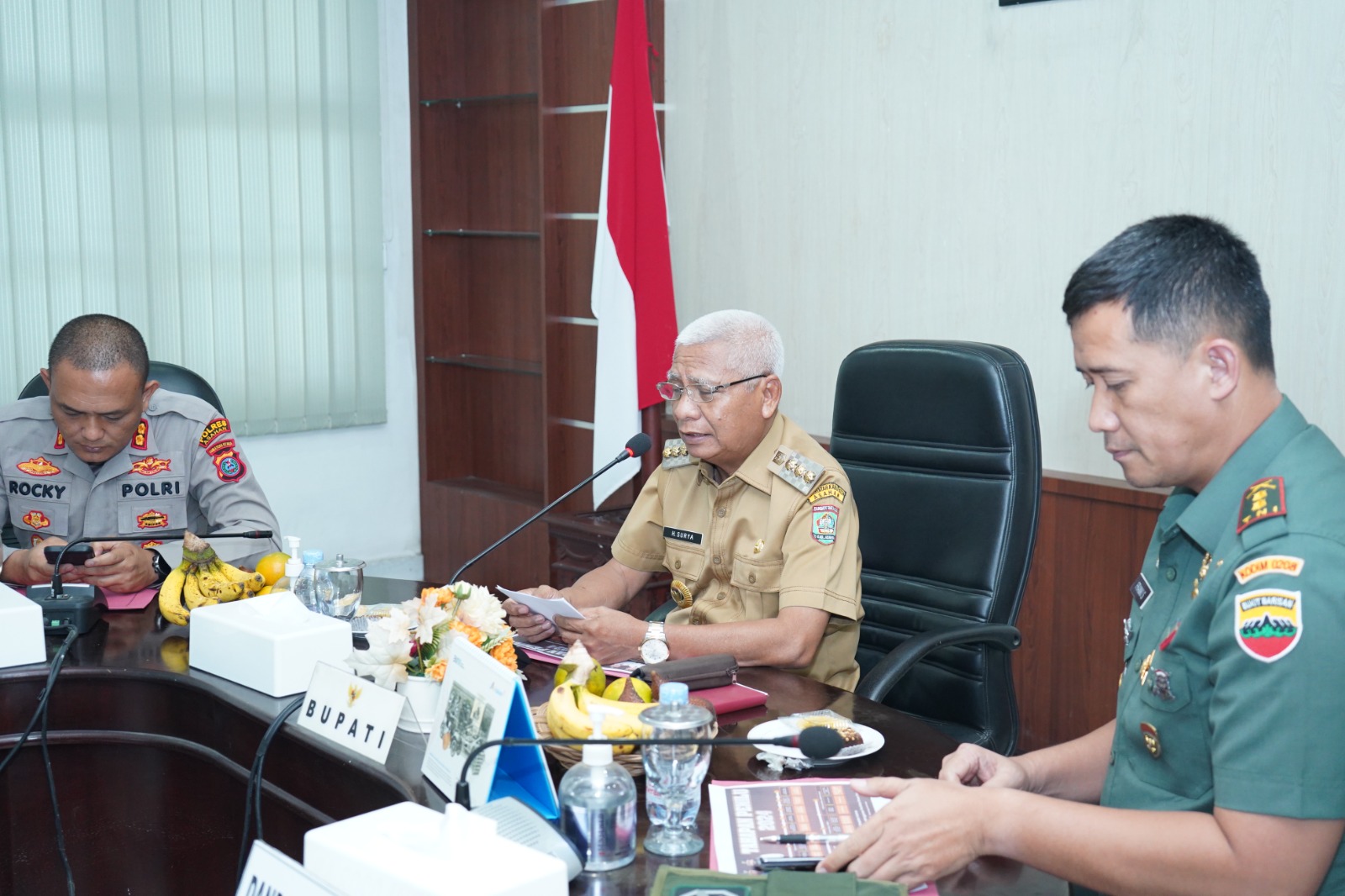 BeritaNasional.ID, ASAHAN SUMUT – Bupati Asahan H. Surya, BSc memimpin rapat bersama Forkopimda membahas isu aktual yang berkembang menjelang Pemilu Tahun 2024, bertempat di Aula Mawar kantor bupati setempat, Senin (29/05/2023).