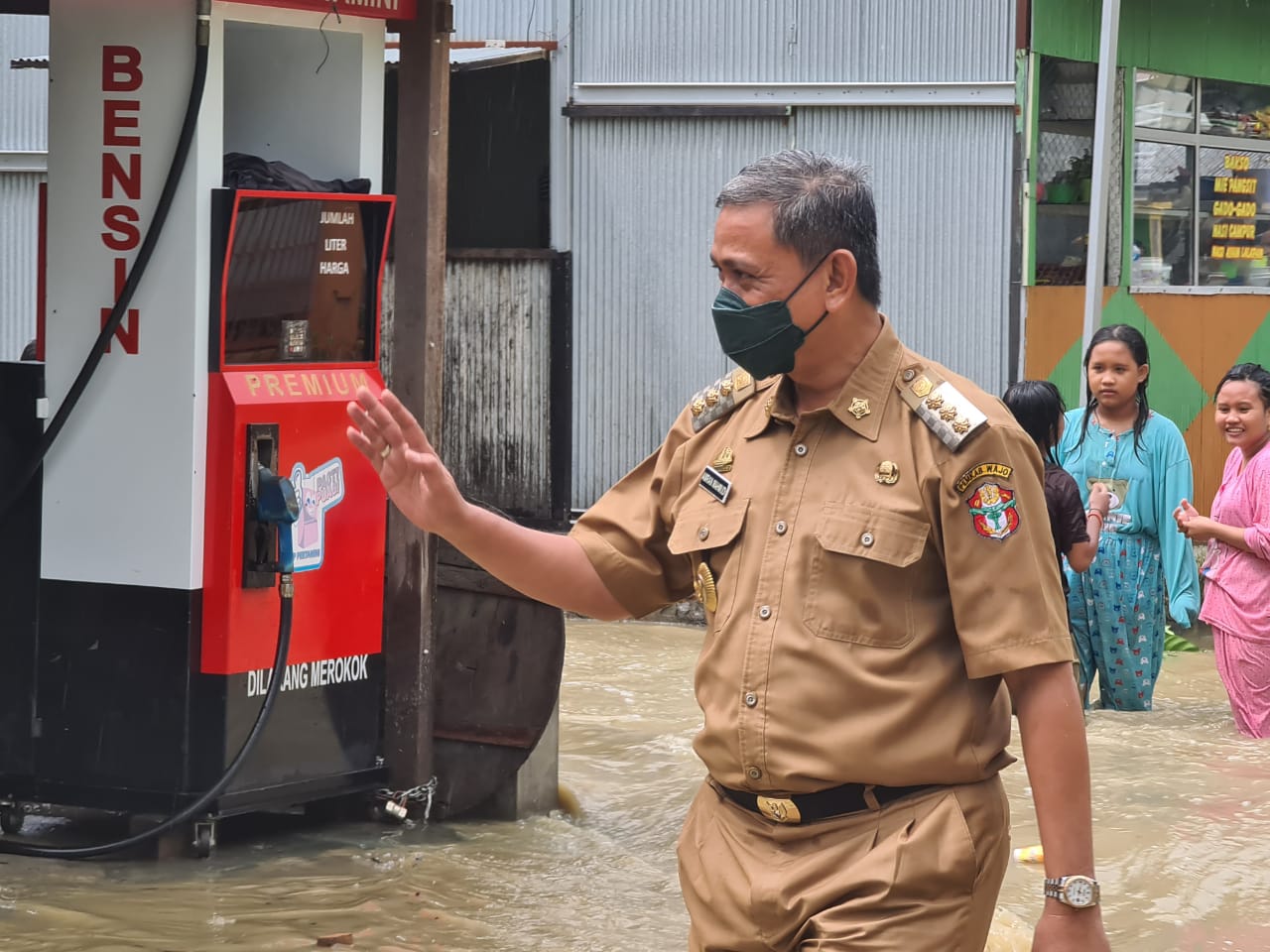 Di tengah padatnya agenda yang sudah terjadwal, Amran Mahmud yang masih mengenakan pakaian dinas harian (PDH) lengkap, melihat langsung kondisi kondisi banjir. Tanpa alas kaki dan pengawalan khusus layaknya kepala daerah jika turun ke lapangan, dia berkeliling melihat kondisi drainase sekaligus berinteraksi dengan warga.