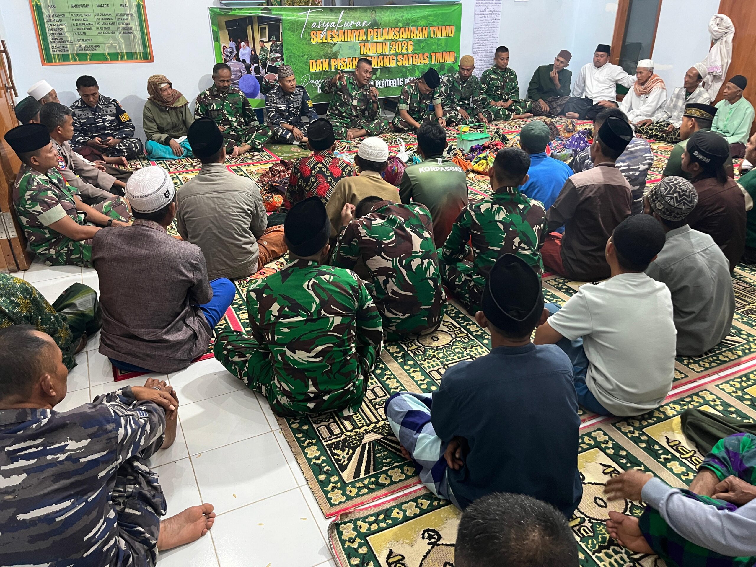 BeritaNasional.id, SITUBONDO – Menjelang berakhirnya program TNI Manunggal Membangun Desa (TMMD) ke-127 Kodim 0823/Situbondo, suasana haru dan penuh kebersamaan terasa di Masjid At-Taqwa, Dusun Plampang, Desa Alas Tengah, Kecamatan Sumbermalang, Kabupaten Situbondo, Senin (9/3/2026) malam.