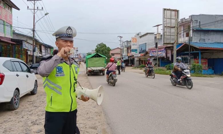 Seperti yang terlihat di jalan Kapuas Pasar Sekadau, Kanit Dikmas Satlantas Aipda Yuni Iswandi bersama Bripka Sujarwati menyampaikan imbauan dan pesan tentang Kamseltibcar Lantas.