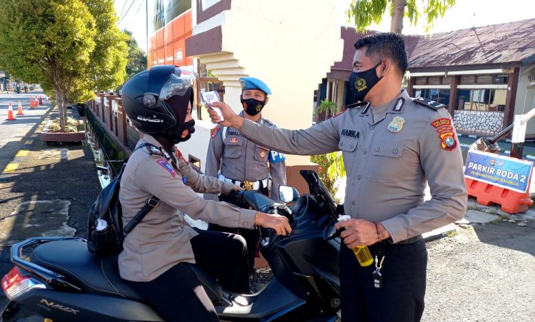 Mamuju.Sulbar.Beritanasional.id –Sebagai upaya mencegah penularan virus corona (Covid-19). Urkee bersama provost Polresta mamuju Aktif menerapkan pendisiplinan pelaksanaan protokol kesehatan dan menerapkan Adaptasi Kebiasaan Baru (AKB) bagi anggota polri yang memasuki Kantor Polresta mamuju.