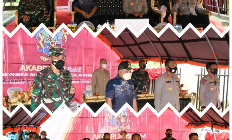 BeritaNasional.ID, GORONTALO – Danrem 133/Nani Wartabone, Brigjen TNI Amrin Ibrahim, S.I.P. bersama Kapolda Gorontalo, Irjen. Pol. Dr. Akhmad Wiyagus, S.I.K, M.Si., M.M. menghadiri kegiatan Bakti Sosial dan Vaksinasi Covid-19 tahap I dan II untuk masyarakat umum, pelajar, dan lansia yang di selenggarakan oleh Akabri 99 dirangkaikan dengan Vicon bersama Kapolri dan panglima TNI.