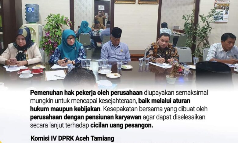 ACEH TAMIANG — Dewan Perwakilan Rakyat Kabupaten (DPRK) Aceh Tamiang menerima pengaduan sejumlah pensiunan eks PT Mopoli Raya. Pengaduan tersebut terkait uang pesangon yang belum dibayar.