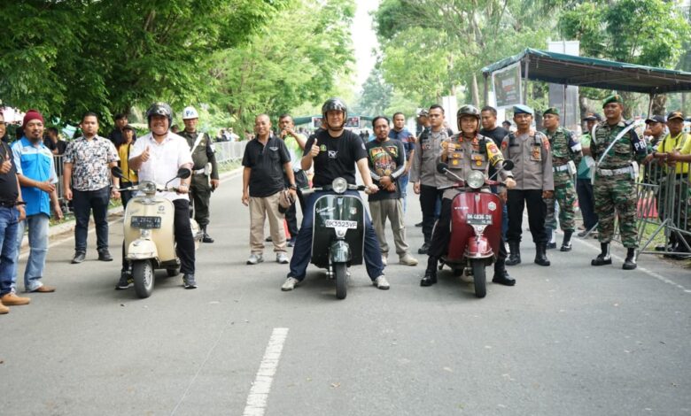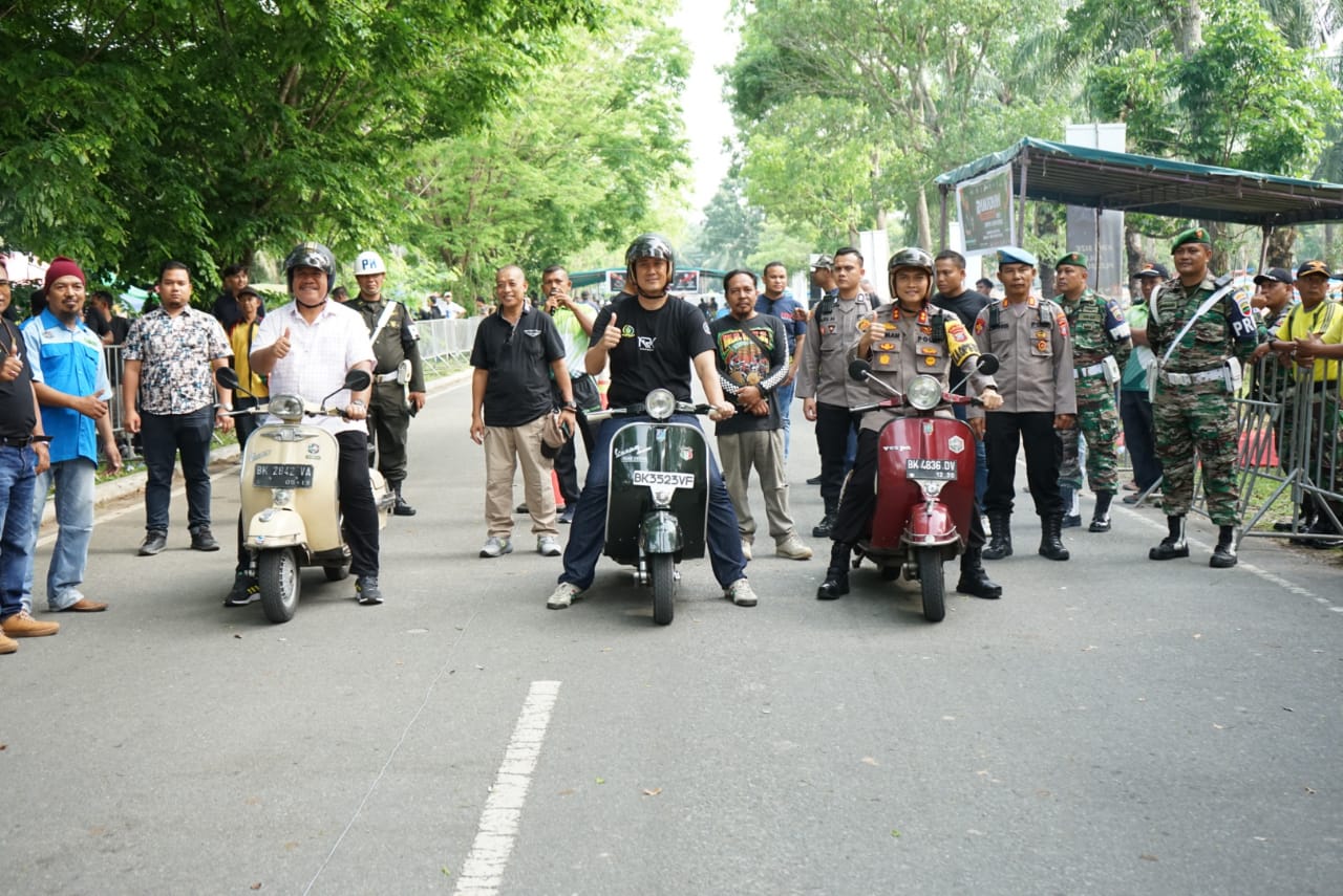 BeritaNasional.Id – Asahan, Sumatera Utara – Test drive mengendarai vespa oleh Dandim 0208 Asahan Letkol Inf. Franki Susanto bersama Kapolres AKBP Roman Smaradhana Elhaj, dan Wakil Bupati Taufik Zainal Abidin menandai dibukanya even Ramadhan Drag Bike 2023 di lapangan Pabrik Benang Kisaran, Minggu (19/03/2023).