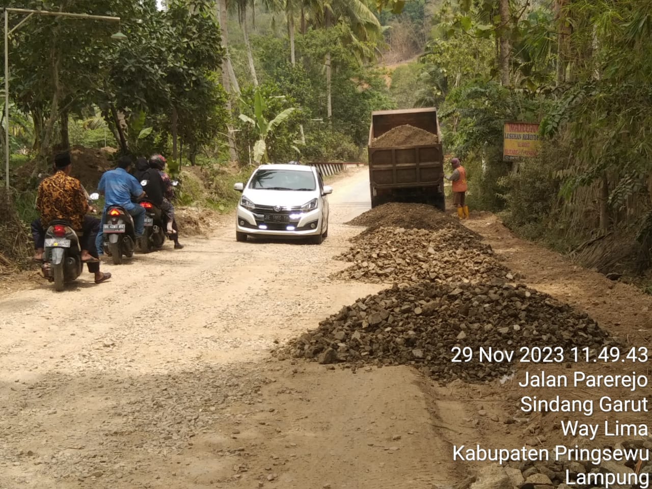 Ketua Dewan Pimpinan Cabang (DPC) Trinusa Kabupaten Pringsewu Abdul Manaf menyampaikan, selain tidak ditemukannya papan informasi pekerjaan, pekerjaan tersebut diduga menggunakan batu tidak sesuai standar.