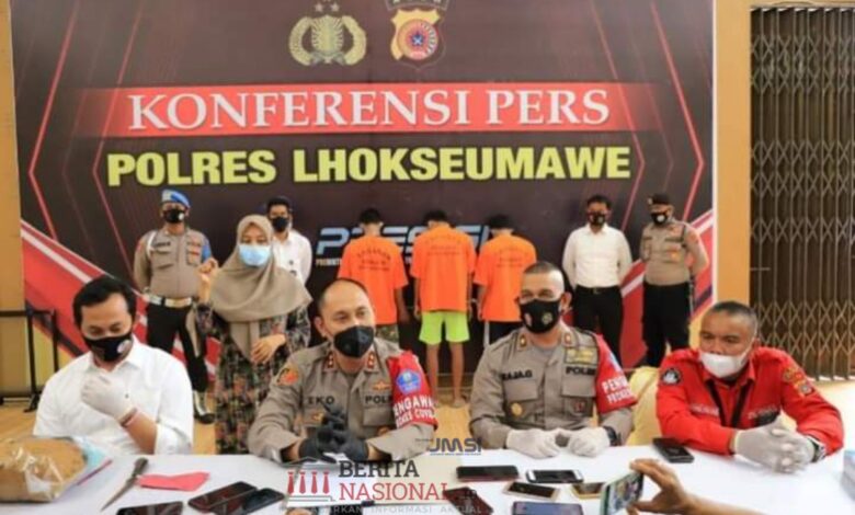 Kapolres Lhokseumawe AKBP Eko Hartanto SIK MH dalam konferensi pers di ruang serbaguna Wira Satya Mapolres Lhokseumawe, Senin (30/8/2021) kepada sejumlah awak media mengatakan, ketiga tersangka berinisial, DS (37), S (25) dan MFI (26) warga Kecamatan Banda Sakti, Kota Lhokseumawe.
