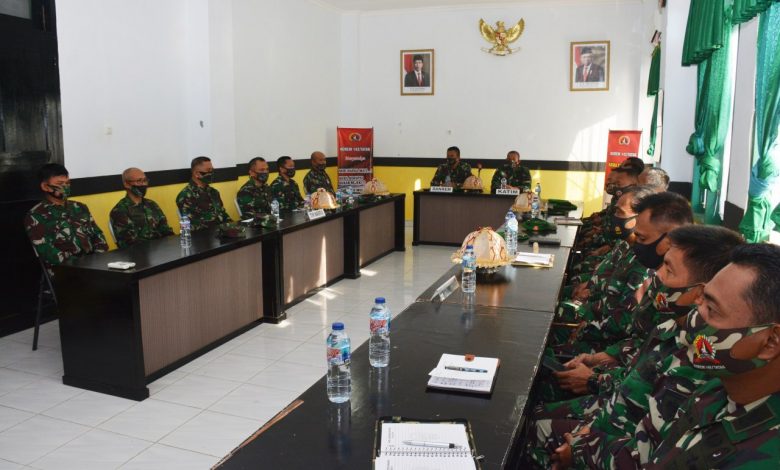 ” Saya tekankan kepada seluruh Staf agar benar benar memanfaatkan momentum pertemuan kali ini dengan sebaik baiknya, perhatikan setiap arahan maupun petunjuk yang diberikan agar segera dapat dilakukan perbaikan ” Terang Danrem 142/Tatag