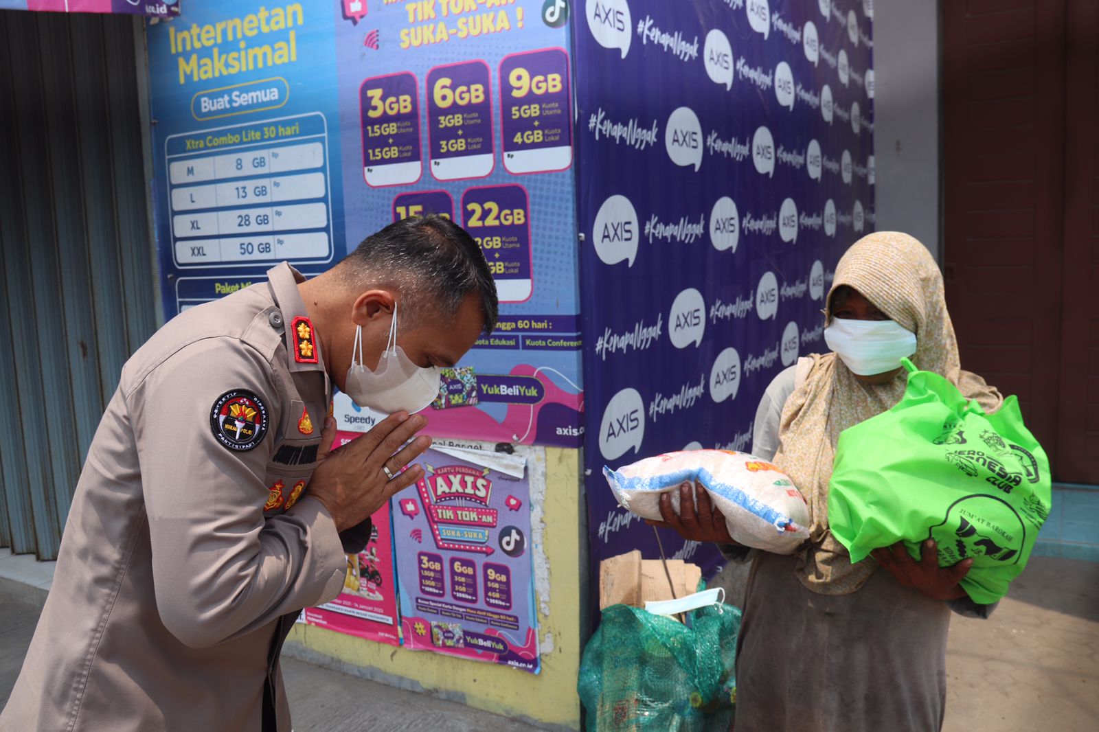Tim Jumat Barokah Bidhumas Polda Banten Bagikan Paket Sembako di Sepanjang Jl. Raya Serang-Jakarta