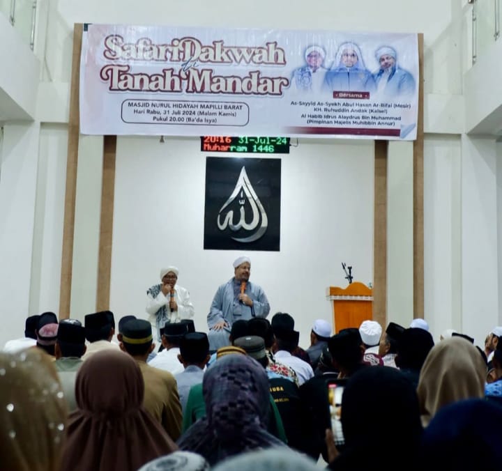 BeritaNasional.ID.POLMAN SULBAR– Safari Dakwah bersama para Habaib diisi dengan kegiatan Tausiyah yang diberi nama Safari Dakwah di Tanah Mandar, berlangsung pada Rabu (malam Kamis), 31 Juli 2024 pukul 20.00 Wita bertempat di Masjid Nurul Hidayah, Mapilli Barat Kec. Luyo Kab. Polewali Mandar. Kegiatan ini mengusung tema : Semangat spiritual, baik untuk Polman dalam peningkatan iman dan taqwa serta menjalin ukhuwah antar sesama.