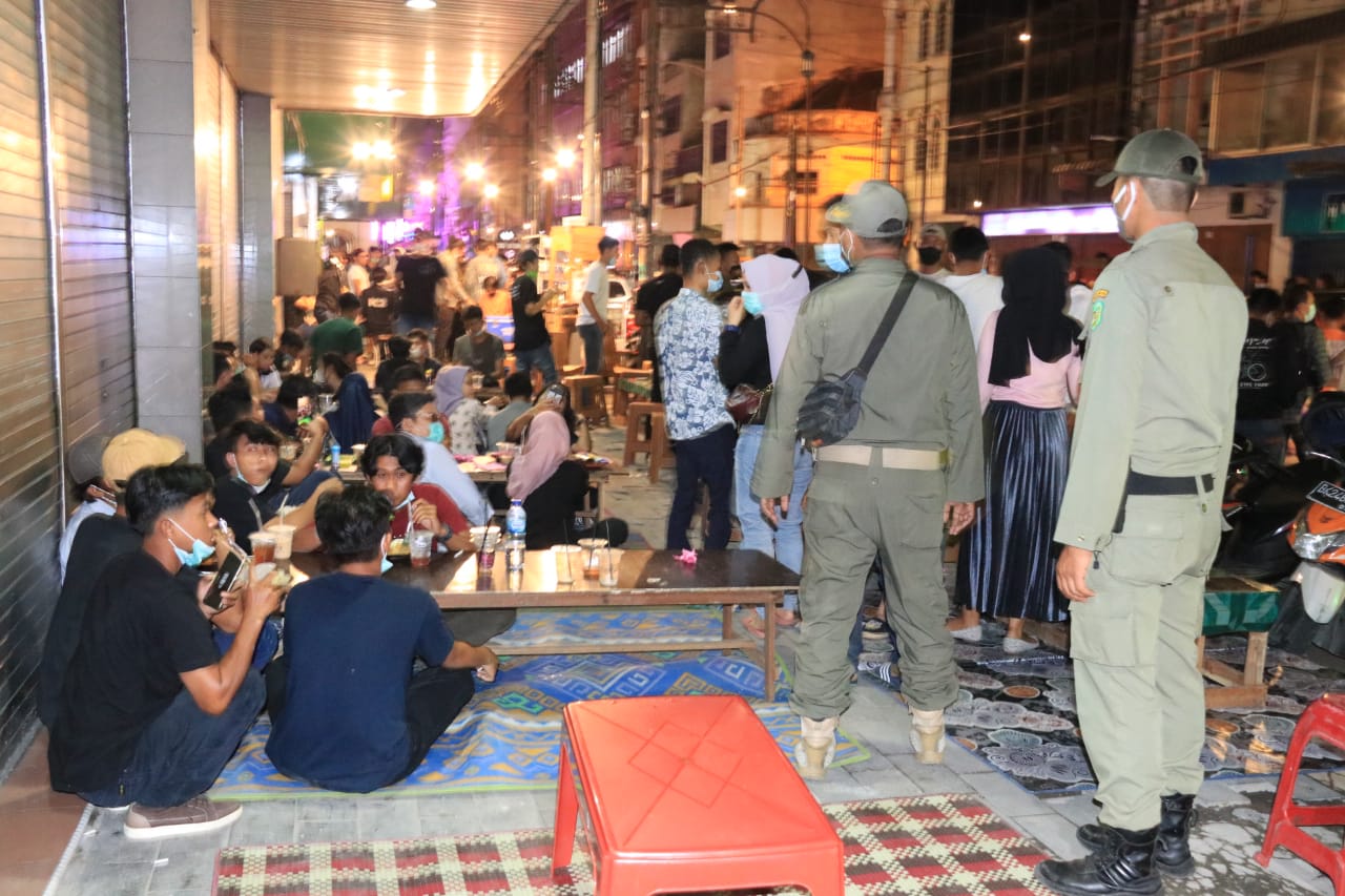 Tim gabungan mengawalinya di Jalan Ahmad Yani VII. Lapak belasan pedagang angkringan dipenuhi pengunjung, selain sebagaian besar pengunjung tidak mengenakan masker, mereka juga mengabaikan social distancing (jaga jarak). Dengan persuasif, tim minta kepada pedagang untuk menutup usahanya dan seluruh pengunjung segera meninggalkan lokasi. Sebab, sesuai dengan Instruksi Gubsu No.188.54/1/IST/2021 tentang Pembatasan Kegiatan Masyarakat Dalam Rangka Pengendalian Penyebaran Covid-19 di Provinsi Sumut bahwasannya jam operasi hanya sampai pukul 21.00 WIB untuk pusat perbelanjaan dan pukul 22.00 untuk pelaku usaha pariwisata.