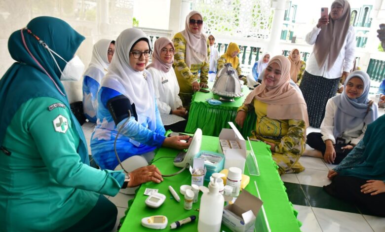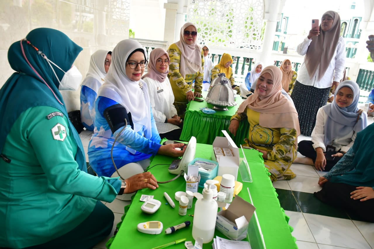Pada kesempatan itu, Cut Resmiati yang turut hadir ikut memeriksakan kesehatannya dengan melakukan pengecekan tekanan darah.