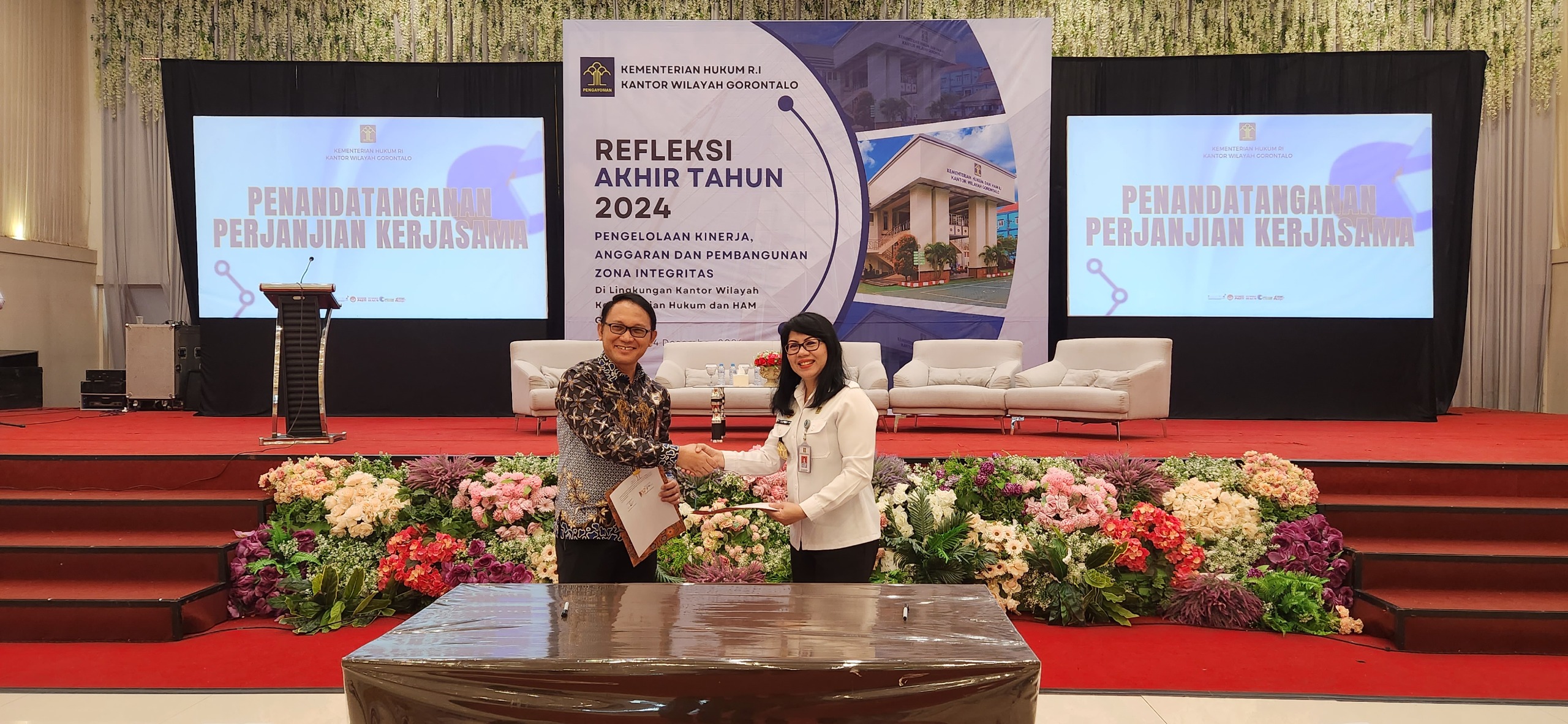 Kegiatan ini berlangsung disela-sela refleksi akhir tahun 2024 Kanwil Kemenkumham Gorontalo, bertempat di Grand Palace Convention Center Gorontalo, pada Jumat (6/12/2024) dan dihadiri oleh Kepala Kanwil Kemenkumham Gorontalo, Pagar Butar Butar, diwakili Kepala Divisi Administrasi, Veiby S. Koloay, beserta jajaran dan Plt. Kepala Perwakilan BPKP Gorontalo, Mohamad Riyanto, serta pimpinan tinggi pratama, kepala unit pelaksana teknis dan pengelola SPIP.