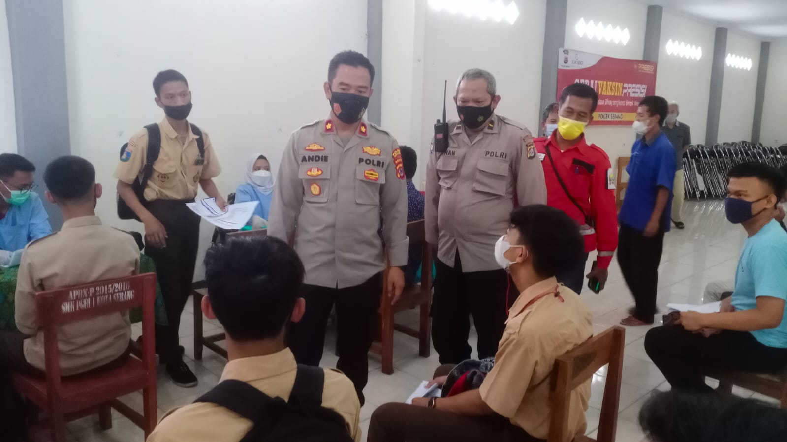 “Hari ini saya meninjau secara langsung pelaksanaan vaksinasi yang berada di SMK 1 PGRI Kota Serang,” ucap KOMPOL Andie.
