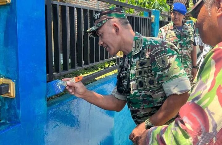 Di tengah peninjauannya itu, Danrem pun tampak tak mau hanya melihat dan berpangku tangan saja. Namun, dirinya juga ikut membantu proses pengecatan pagar Masjid tersebut.