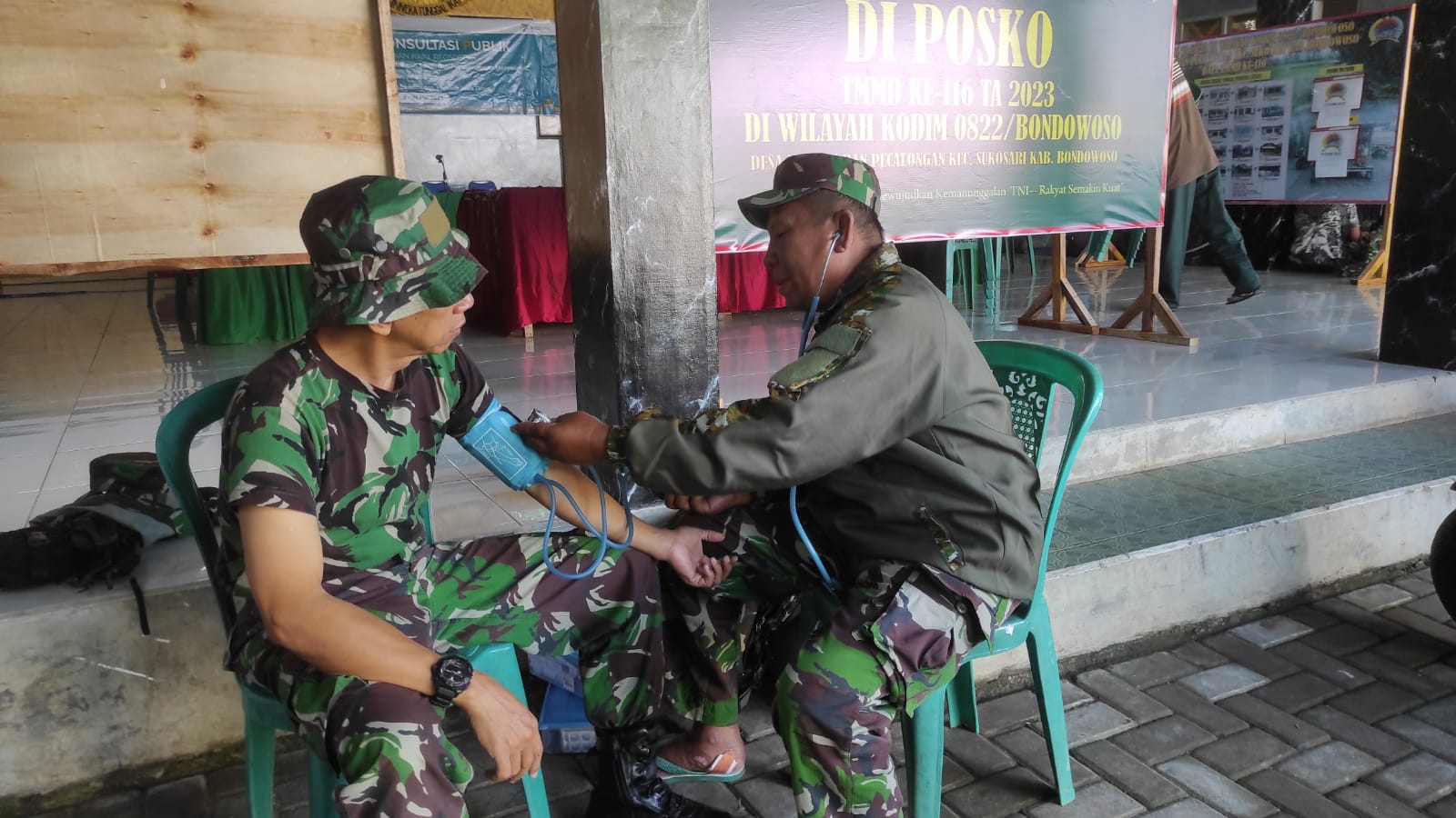 BeritaNasional.ID, BONDOWOSO JATIM – TMMD Ke-116 Kodim 0822 Bondowoso sudah berjalan 3 hari, tentu membuat kondisi kesehatan pihak-pihak yang terlio mengalami ganguan kesehatan, karena cuaca yang tidak bersahabat. Hal inilah yang dilakukan anggota Tim Kesehatan Lapangan (TKL) dari Polkes 05.09.15 Bondowoso Serka Munir yang tergabung dalam Satgas TMMD ke-116 Kodim 0822/Bondowoso, secara rutin melakukan pemeriksaan kesehatan terhadap anggota Satgas maupun kepada masyarakat. Siapapun diperbolehkan berobat hususnya anggota Satgas.