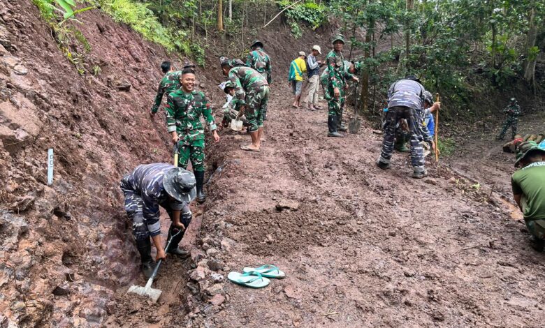 TNI dan Warga Dusun Plampang Bersinergi Gali Pondasi Plengsengan Cegah Longsor