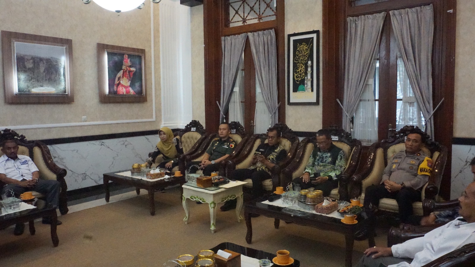 Berita Nasional.ID, BONDOWOSO JATIM – Untuk mempererat hubungan emosional terhadap penyelenggara dan peserta Pemilu serta menjalin komunikasi agar tercipta Pemilu damai, Dandim 0822 Letkol Arm Suhendra Chipta, M.Tr. (Hanla) menghadiri Coffe Morning Forkopimda bersama Ketua Partai Politik di Peringgitan Pendopo Bupati Bondowoso Jln. Letnan Karsono No.02 Kelurahan Blindungan Kecamatan/Kabupaten Bondowoso Kamis 16/11/2023. Kegiatan tersebut dihadiri oleh sekitar 35 Orang. Hadir pula Pj. Bupati Drs. H. Bambang Soekwanto, M.M.