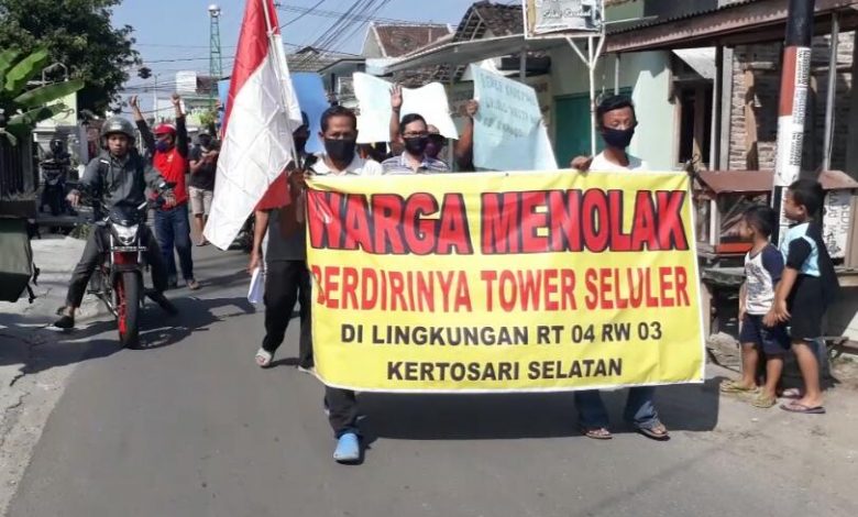 BeritaNasional.ID, Ponorogo – Puluhan warga RT 04 RW 03 Kelurahan Kertosari, Kecamatan Babadan, Ponorogo memprotes keberadaan tower seluler Base Transcelver Station (BTS) yang berdiri di lahan milik Timbul Pranowo warga setempat, Rabu (15/7).