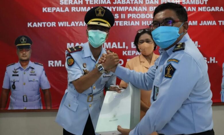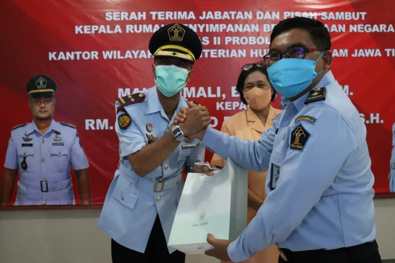 BeritaNasional.ID,PROBOLINGGO –Plh. Kepala Rutan Kelas II B Kraksaan, Kanwil Kemenkumham Jawa Timur, Fathorrasi, pada Senin (14/11/2022) menghadiri kegiatan serah terima jabatan dan pisah sambut Kepala Rumah Penyimpanan Benda Sitaan Negara Kelas II Probolinggo.