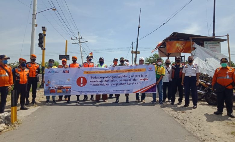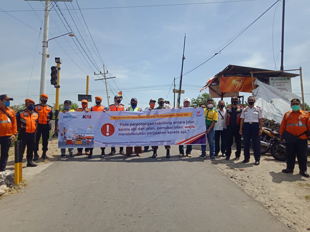 Tumbuhkan Kesadaran Masyarakat Dalam Mentaati Perlintasan Sebidang, KAI Daop 7 Madiun Sosialisasikan Keselamatan di Perlintasan Sebidang