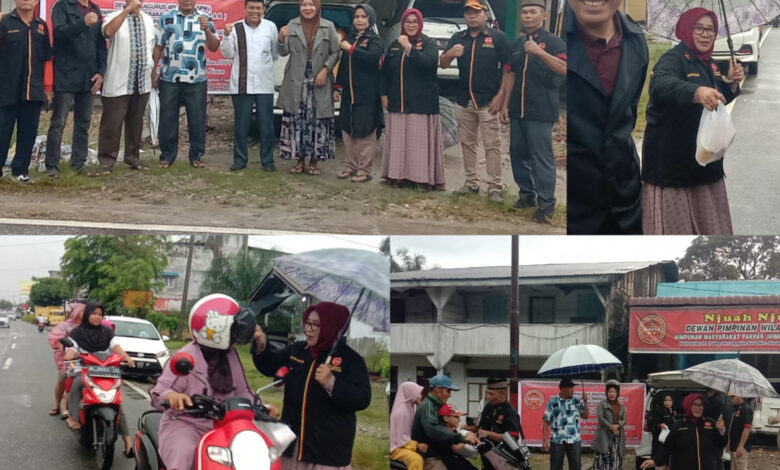 Amatan media BeritaNasional.ID,Meski di guyur hujan rintik-rintik tampak tidak sedikit pun menyurutkan semangat jajaran pengurus DPW Himpak untuk turun kejalan membagikan takjil.(MB)