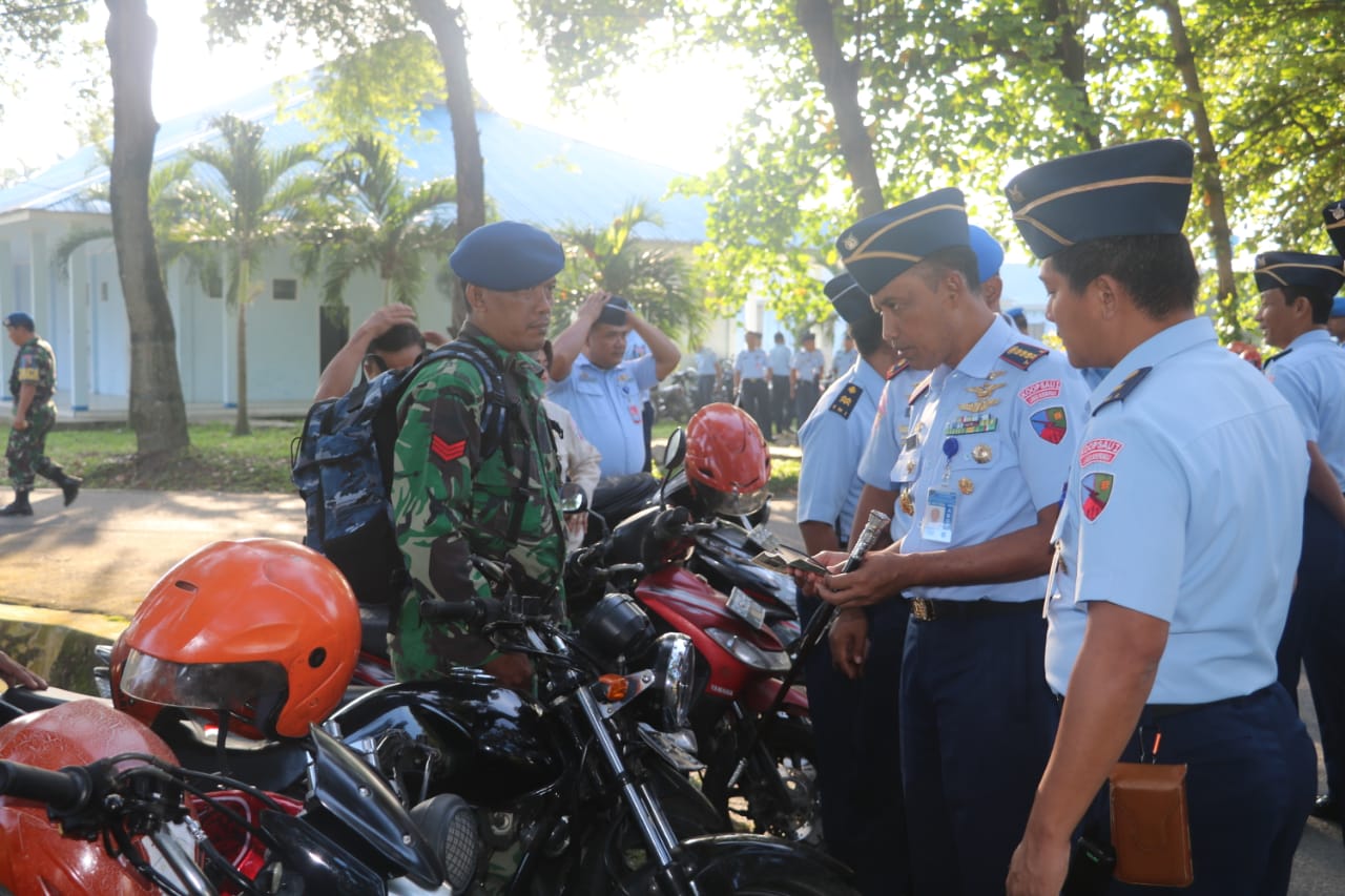 Usai upacara, Danlanud didampingi para Kepala Dinas langsung menuju areal parkir sepeda motor untuk mengecek secara langsung kondisi dan kelengkapan sepeda motor anggota.