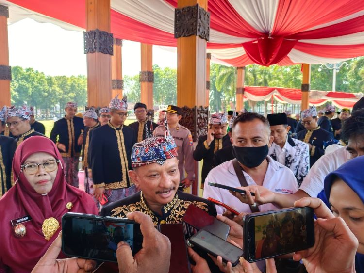 BeritaNasional.ID – SITUBONDO JATIM – Upacara peringatan Hari Jadi Kabupaten Situbondo (Harjakasi) ke-205 tahun 2023 berbeda dengan upacara tahun-tahun lalu. Sebab, dalam upacara Harjakasi tahun ini, pakaian khas Kabupaten Situbondo atau pakaian kebesaran ‘Rasok Aghung’ yang digunakan Bupati dan Forkopimda Situbondo serta Kepala OPD Pemkab Situbondo tampil lebih elegan, Selasa (15/8/2023).